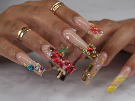 I am a self-taught, licensed nail technician with over 5 years of experience. Specializing in nail art, I offer services for acrylic full set, nail enhancements. I am passionate about my craft and enjoy what I do. Nails allow for one to embrace their alter ego, while boosting their confidence simultaneously. No matter the length, individual creativity and personality is able to be expressed.